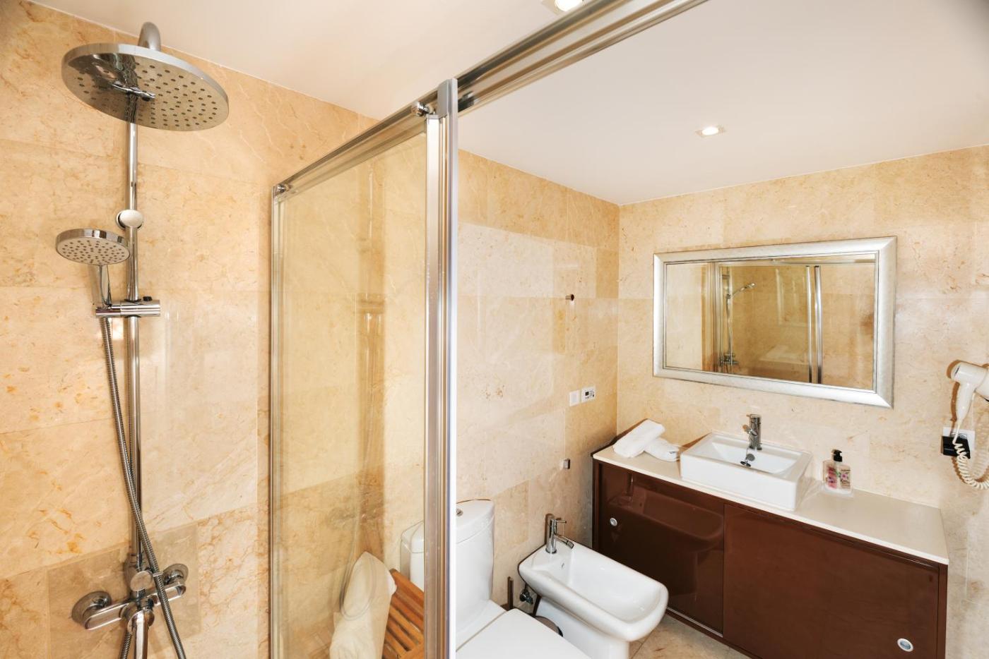 One-Bedroom Apartment. The air-conditioned apartment features 1 bedroom and 1 bathroom with a shower and a hairdryer. The well-fitted kitchen has a refrigerator, a dishwasher, kitchenware and an oven. The apartment offers a washing machine, a tea and coffee maker, a seating area, a flat-screen TV, as well as mountain views. The unit offers 1 bed.