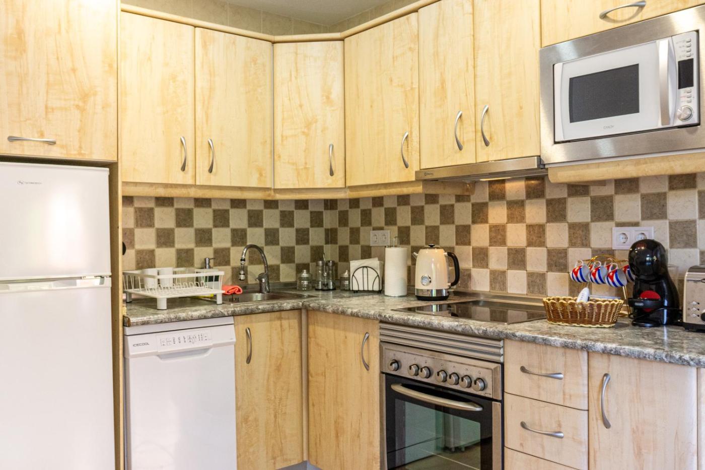 One-Bedroom Apartment. Guests will have a special experience as the apartment features a pool with a view. This spacious apartment includes 1 living room, 1 separate bedroom and 1 bathroom with a bath and free toiletries. Guests can make meals in the kitchen that has a stovetop, a refrigerator, a dishwasher and kitchenware. The air-conditioned apartment offers a flat-screen TV, a washing machine, a coffee machine, a seating area as well as sea views. The unit has 3 beds.