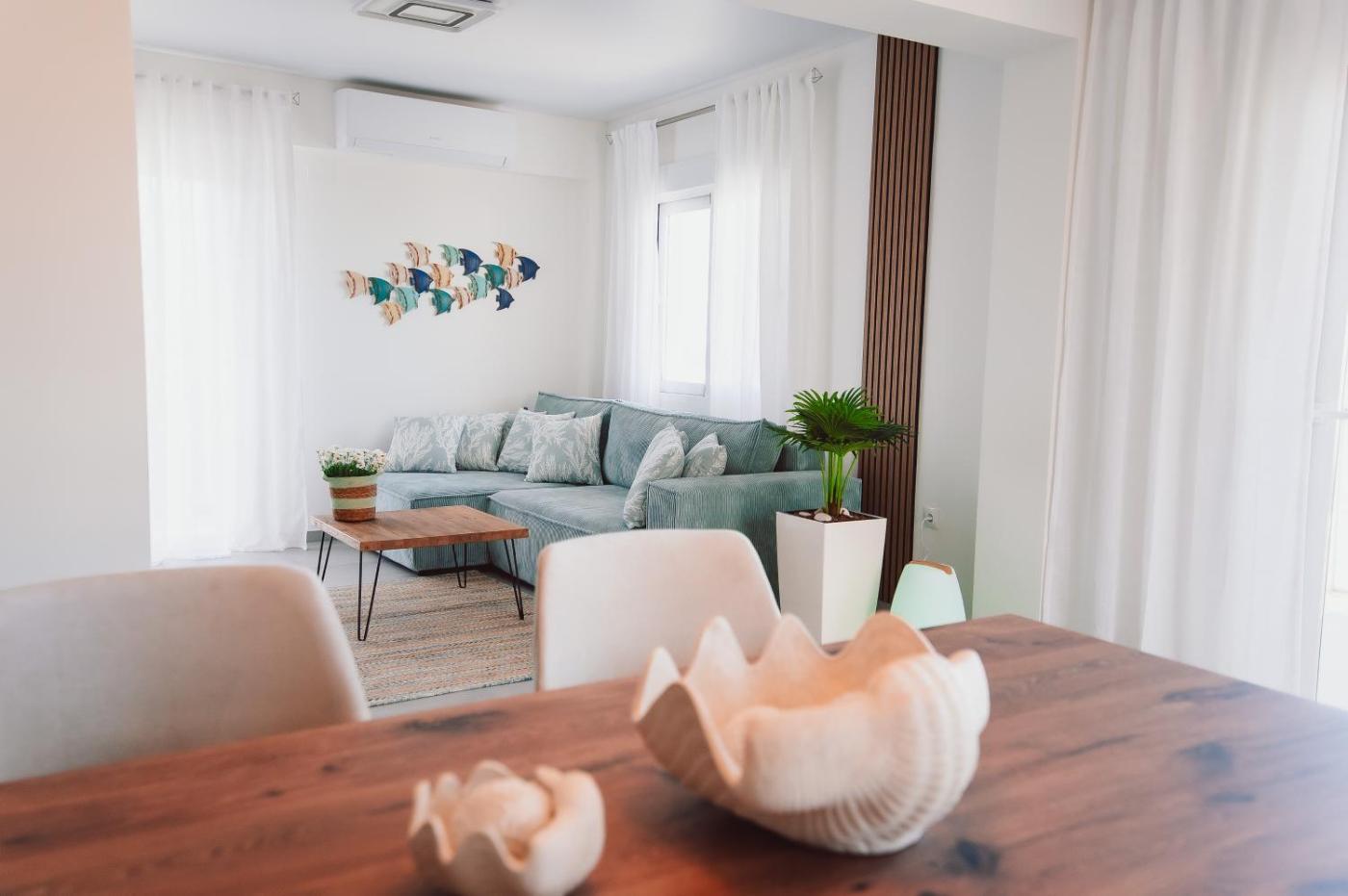 Two-Bedroom Apartment. This spacious apartment is comprised of 1 living room, 2 separate bedrooms and 1 bathroom with a walk-in shower and a hairdryer. Guests can make meals in the kitchen that is fitted with a stovetop, a refrigerator, a dishwasher and kitchenware. The air-conditioned apartment offers a flat-screen TV with streaming services, a washing machine, soundproof walls, a coffee machine as well as sea views. The unit offers 3 beds.