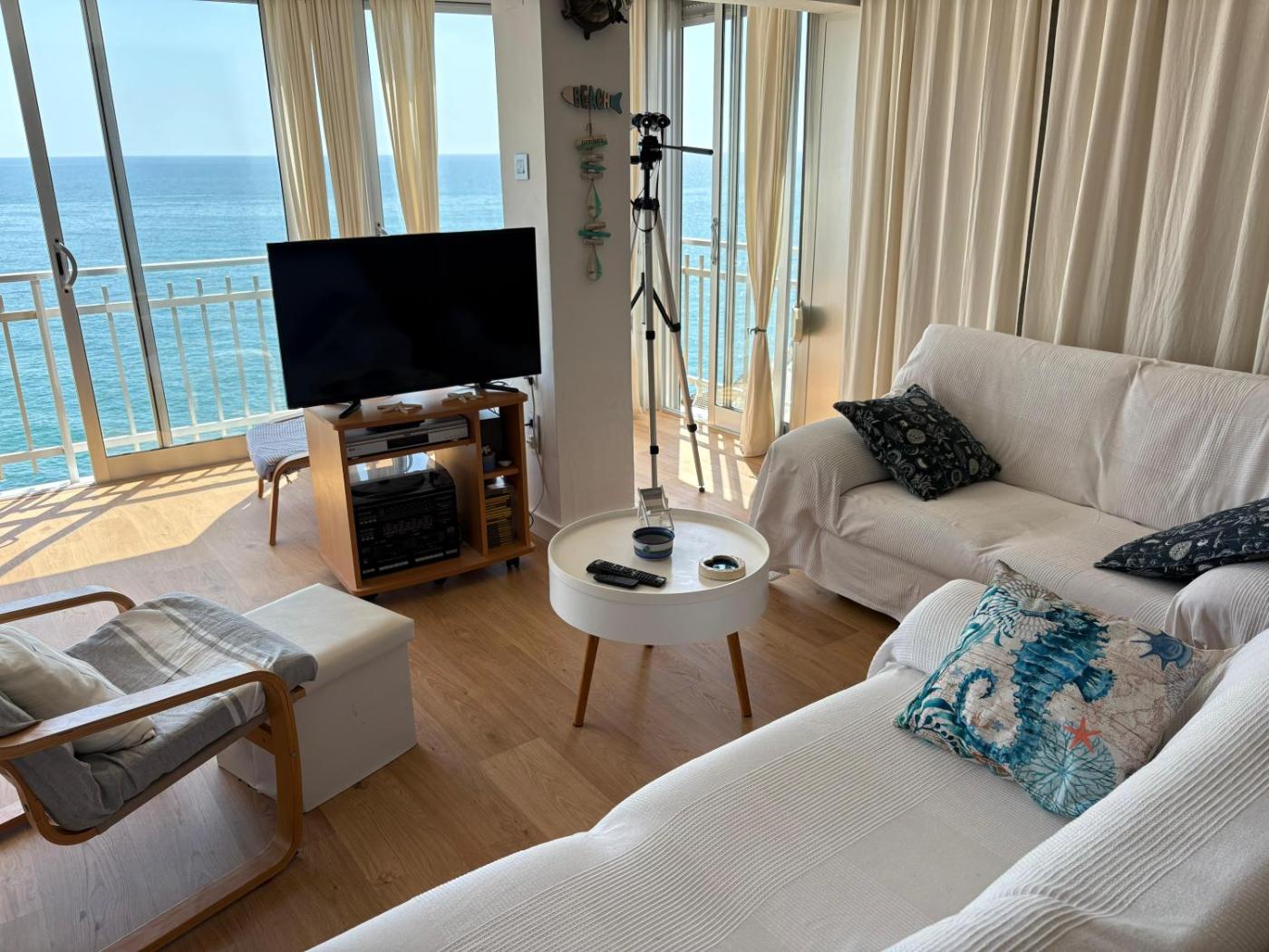 Two-Bedroom Apartment. This spacious apartment consists of 1 living room, 2 separate bedrooms and 1 bathroom with a bath and free toiletries. Meals can be prepared in the well-fitted kitchen, which is equipped with a stovetop, a refrigerator, kitchenware and an oven. Featuring a terrace with sea views, this apartment also provides a washing machine and a flat-screen TV. The unit offers 3 beds.
