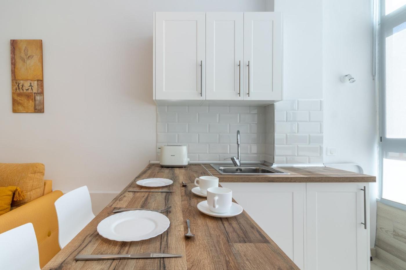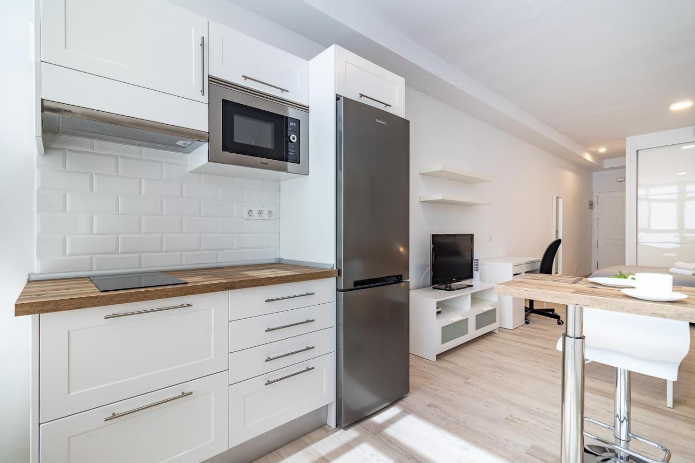 Studio. The studio offers a washing machine, a tea and coffee maker, as well as a private bathroom boasting a shower and a hairdryer. In the fully equipped kitchen, guests will find a refrigerator, kitchenware, a microwave and a toaster. This studio features a sofa and a TV.