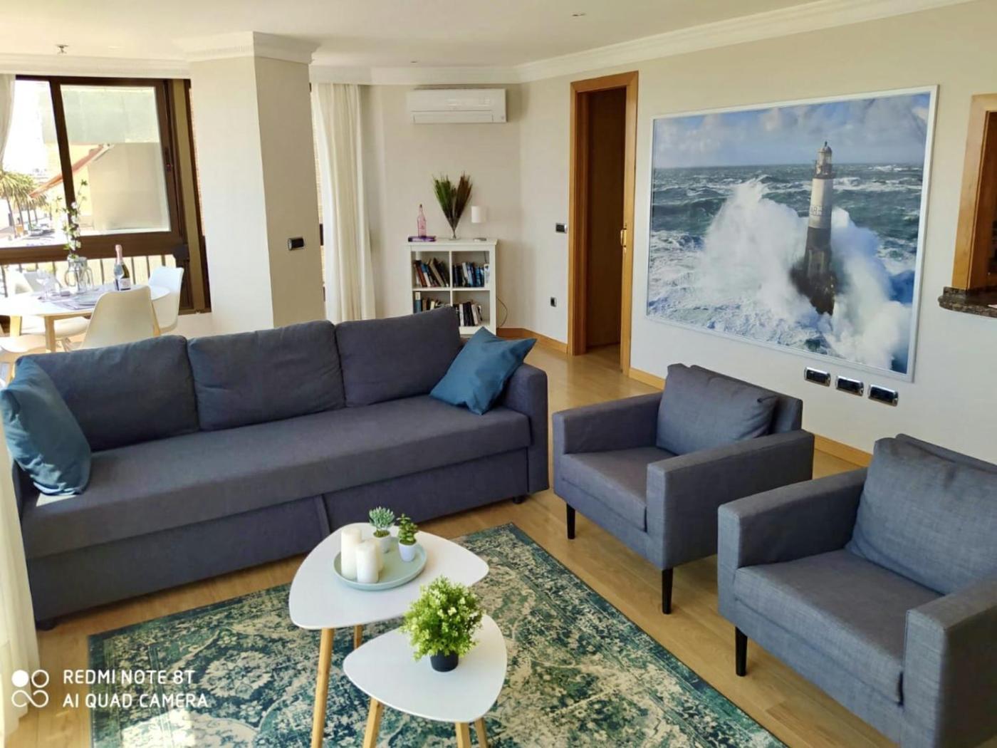 The apartment with a balcony and sea views features 1 bedroom, a living room, a flat-screen TV, an equipped kitchen with an oven and a microwave, and 2 bathrooms with a walk-in shower. Towels and bed linen are featured in the apartment. For added privacy, the accommodation has a private entrance and soundproofing.