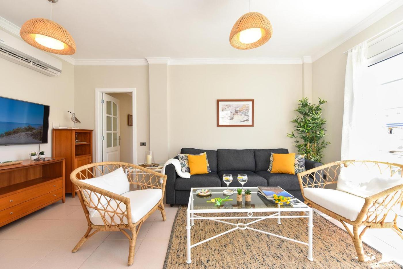 Two-Bedroom Apartment. Featuring 2 bedrooms, this spacious apartment offers 1 bathroom with a hairdryer, a seating area and terraceyou can relax. Guests will find a stovetop, a refrigerator, a dishwasher and kitchenware in the well-fitted kitchen. The apartment also has a barbecue. This apartment features air conditioning, a washing machine, flat-screen TV, as well as winechampagne for guests. The unit has 3 beds.