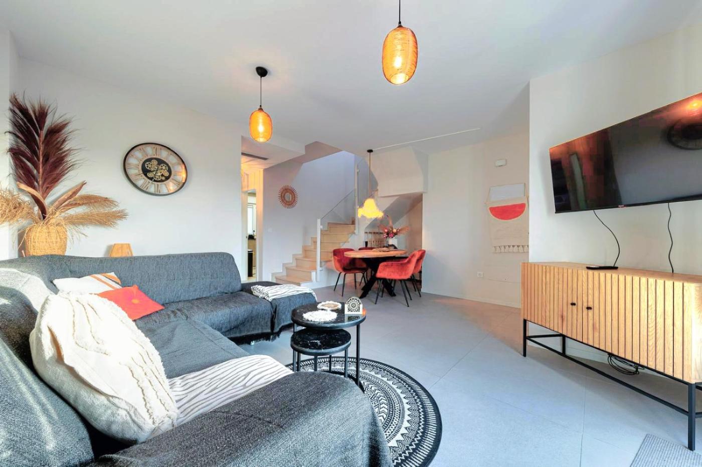The spacious apartment with a terrace and quiet street views has 2 bedrooms, a living room, a flat-screen TV, an equipped kitchen with a dishwasher and an oven, and 2 bathrooms with a walk-in shower. Towels and bed linen are available in the apartment. The property has an outdoor dining area.