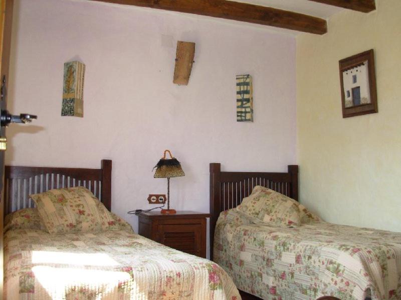 Three-Bedroom House. This house features and rustic style décor with wooden floors and exposed beams. The living room offers air conditioning. It has a fireplace, flat-screen TV, and dining table. A ceramic hob, toaster and coffee machine are included in the kitchen area. There are 2 twin bedrooms, a double bedroom and 2 bathrooms. For reservations of 4 people, guests can use 2 bedrooms, 1 of the bathrooms, and the rest of the house. This house has an occupancy of 6 guests as maximum. ;